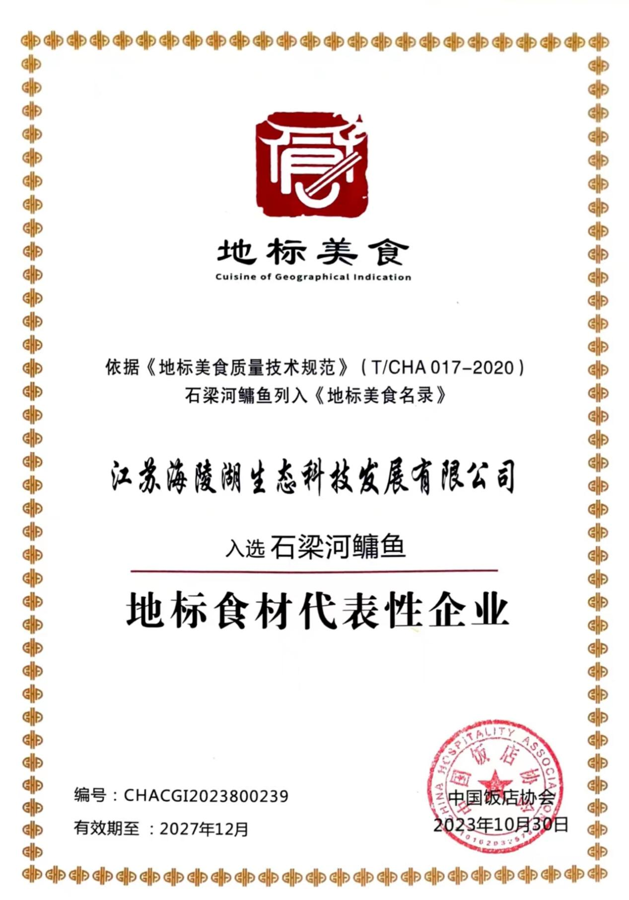 寒冬將至,又一振奮人心消息傳來。海陵湖公司獲評中國飯店協會地標美食代表性企業。該稱號肯定了海陵湖公司在生態漁業養殖的突出貢獻成為“石梁河鳙魚”地標美食的代表企業。
