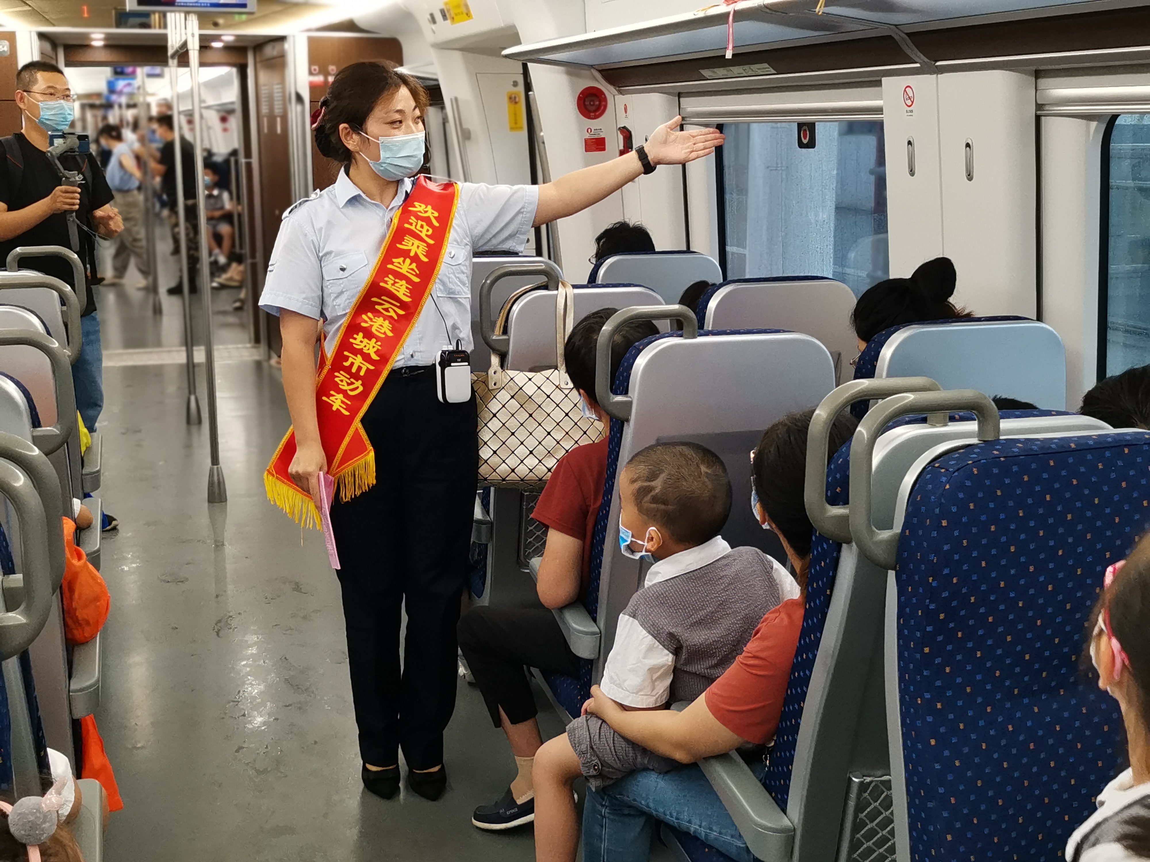 近日,來自連云港市的280余名“交廣”小記者開展以“體驗動車舒適,感受家鄉變化”為主題的城市動車體驗活動。按照約定時間,小記者們在城市動車連云港站集合,與家長們一起踏上了開往連云方向的城市動車。當孩子們看見了繪有祥云圖案的城市動車時都非常興奮,家長們也紛紛拿出手機和孩子們拍照留念。